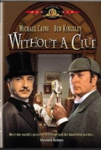 “Without A Clue” is one of my favorite movies of all time. Forget the fact that I am a Holmes/Watson fan; it’s just a great movie. Michael Caine is brilliant as Holmes (well, brilliantly dim) and Ben Kingsley is superb as Watson. This is the “real” story of Sherlock Holmes. It turns out that the real sleuth in the team is Watson. The problem is that Watson was looking for an appointment to a conservative medical school staff and when he became involved with a Scotland Yard case attributed the solution to a mythical character, Sherlock Holmes. When people want to meet Sherlock he hires an actor (Michael Caine) to play the part. The phony Sherlock is a little dim, a drinker and a swordsman. There is the inevitable case with Moriarty, stolen Bank of England plates and dozens of great lines.