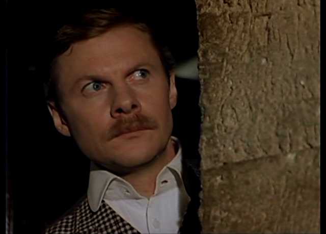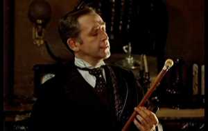 Except for one thing (and I really mean that, one thing) this would be the perfect version of the Hound of the Baskervilles. What is that thing? Sir Henry Baskerville! Sir Henry is played by Nikita Mikhalkov and it is atrocious! When Sir Henry first walked into 221B all I could think was, “what have the Canadians done to the Russians that they hate them so much?” Mikhalkov is one of the best known and most appreciated actors in Russian. He is an ardent nationalist and was once thought of as a possible candidate for high office. But here, he almost ruins the film. His portrayal of Sir Henry is such that the character is a total buffoon. When I first watched it all I could think of was his likeness to Snidely Whiplash from the old Dudley Do-Right cartoons. Maybe that was his only impression of Canadians. Sir Henry is a totally unsympathetic character.
