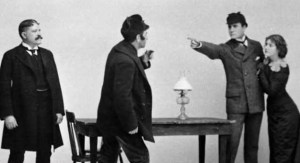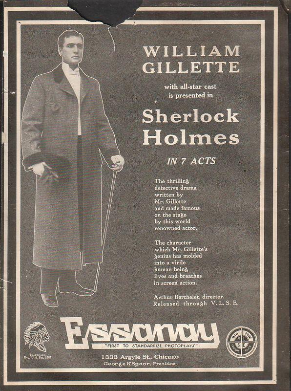 By 1916 William Gillette had played Sherlock Holmes hundreds of times. On the stage, Gillette was known for his impeccable timing, attention to detail and “first time” method of acting. How interesting it must have been in 1916 for him to now have to try and portray the Great Detective without words. The silent film version of Gillette’s play Sherlock Holmes was produced by Essanay Studios at the Iverson Ranch in California. The Iverson ranch would become the backdrop for over 2000 movies in the next century. The play is well known to all Holmes fans and is a compilation of at least four stories: The Final Problem, A Scandal in Bohemia, A Study in Scarlet and The Copper Beeches. Gillette would play the part over 1300 times in his career.